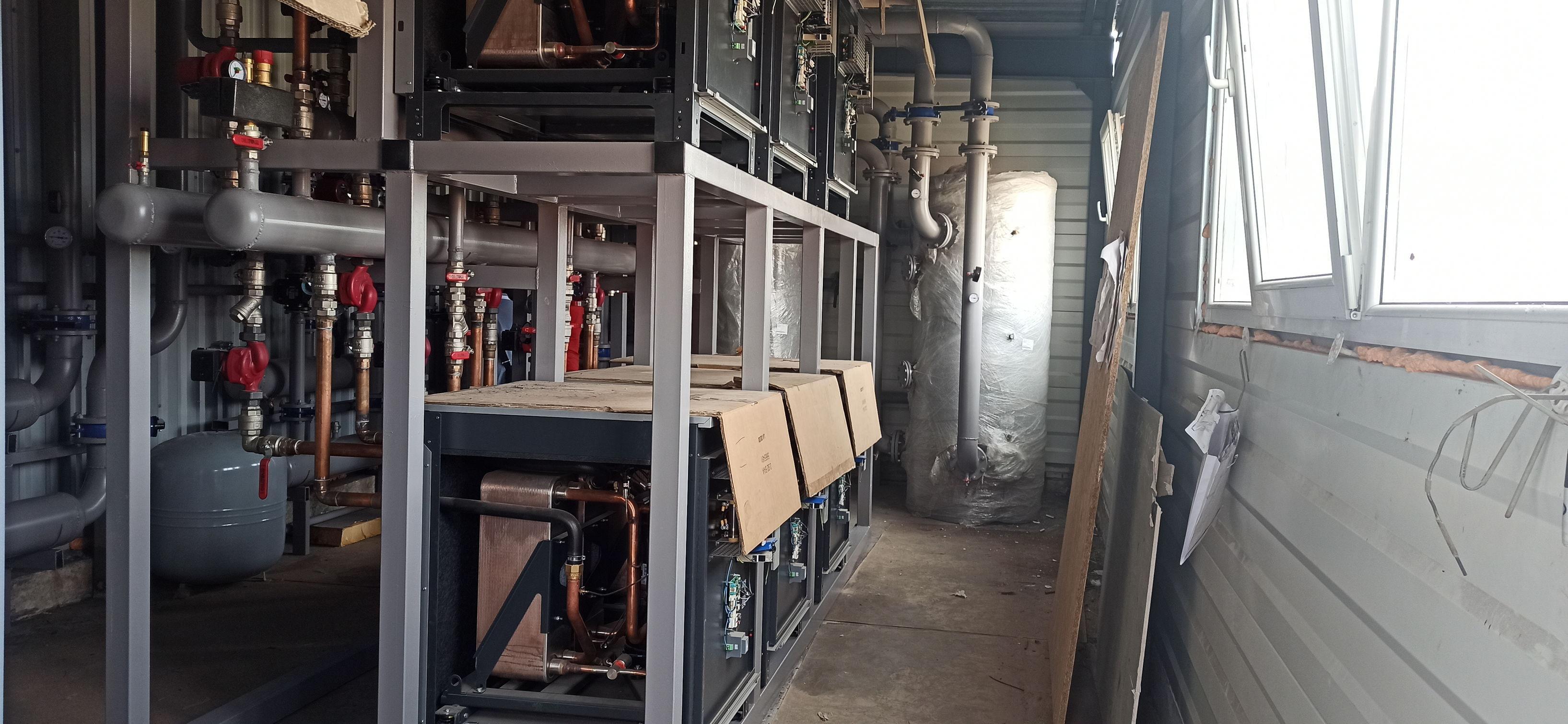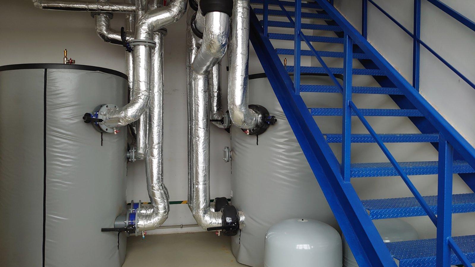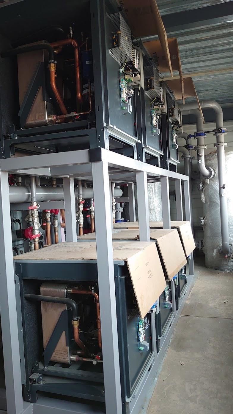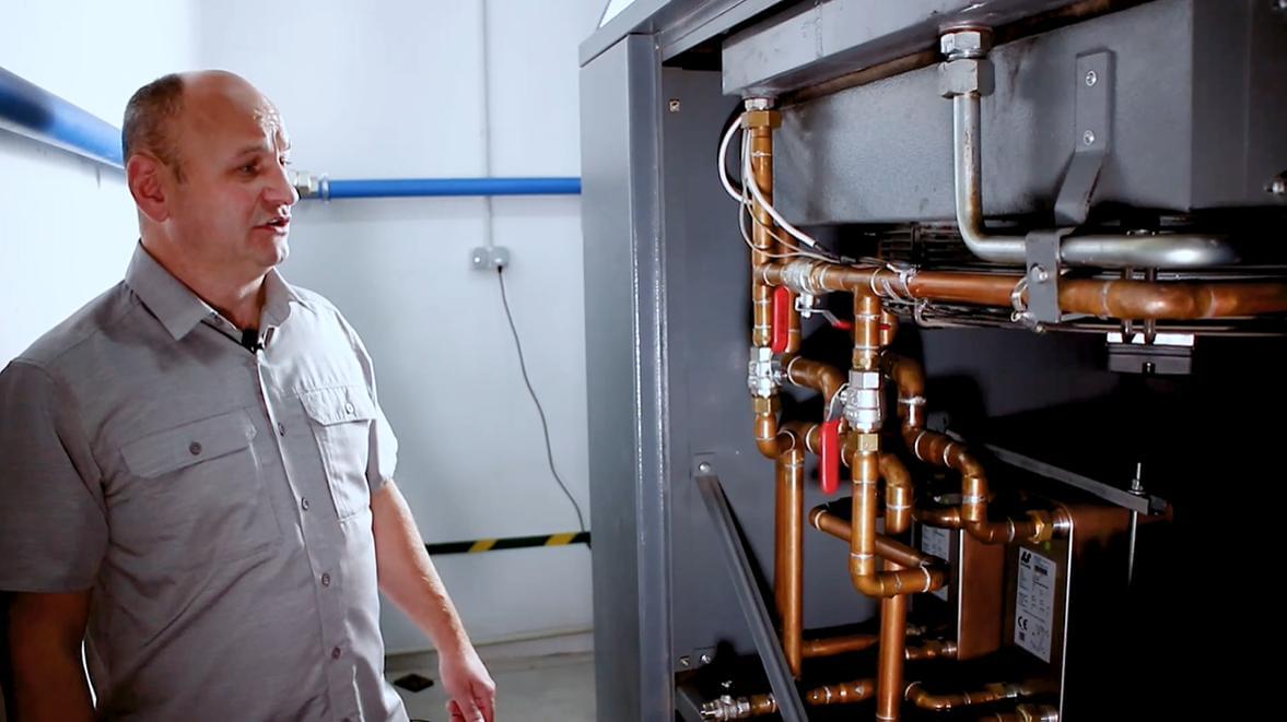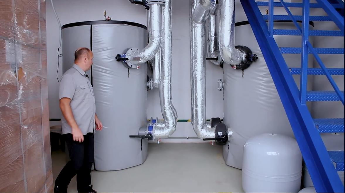 Тепловий насос енергоефективним способом вирішує відразу два завдання: по охолодженню і нагріванню технологічної води до потрібних температур, сумарно споживаючи 80 кВт