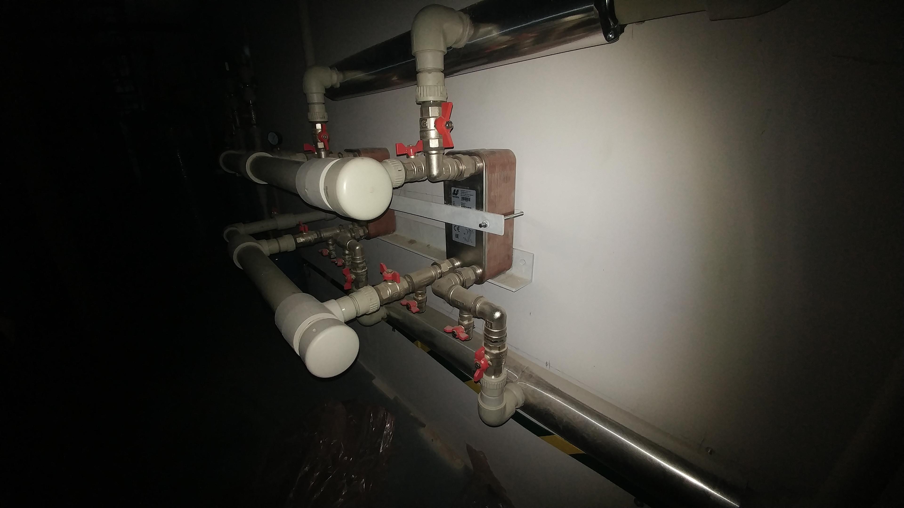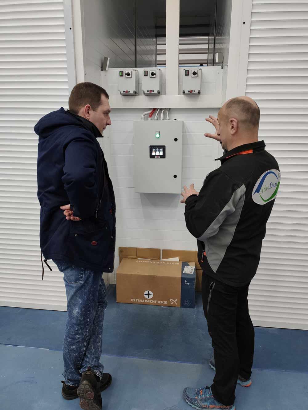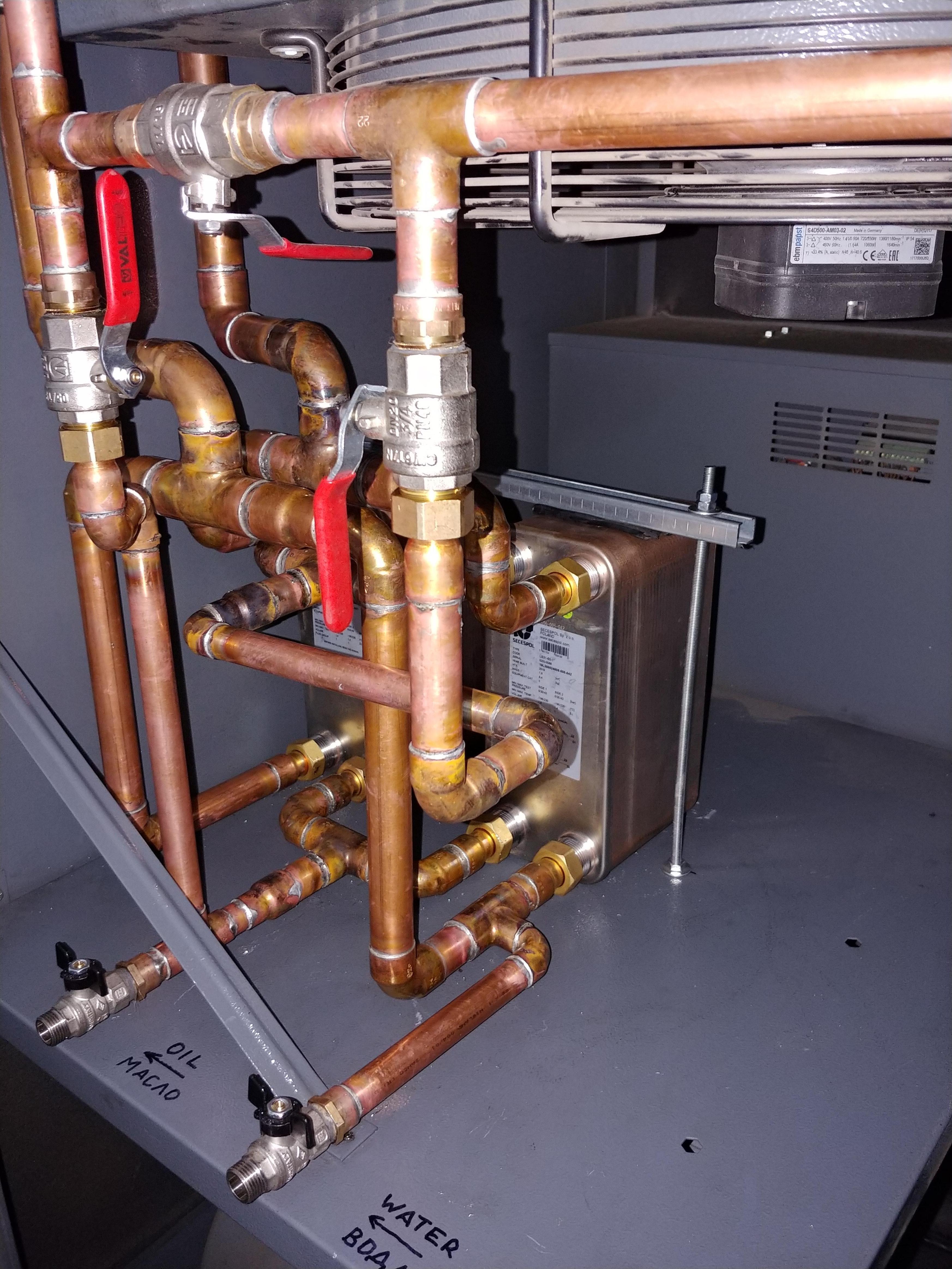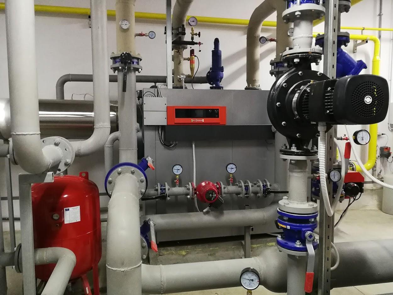 Тепловий насос енергоефективним способом вирішує відразу два завдання: по охолодженню і нагріванню технологічної води до потрібних температур, сумарно споживаючи 80 кВт