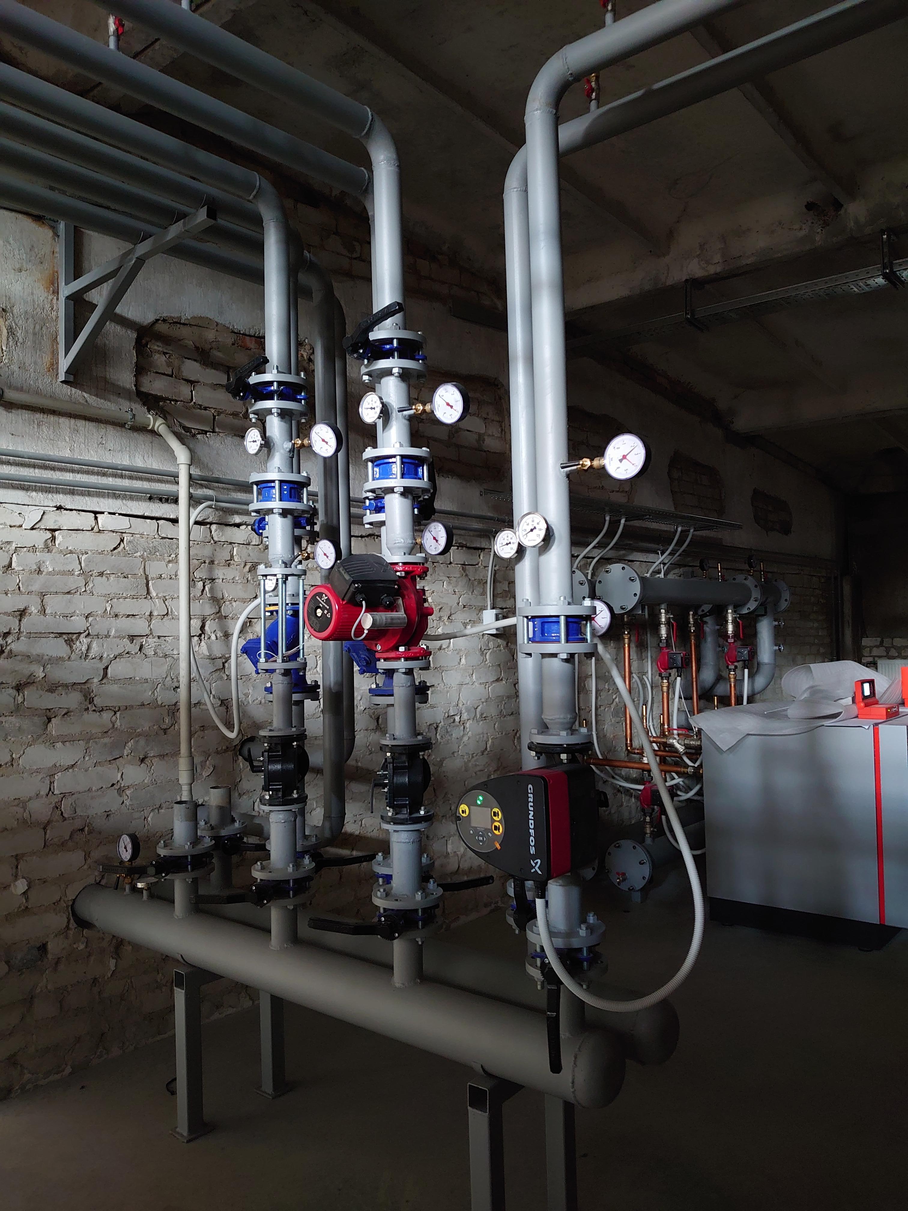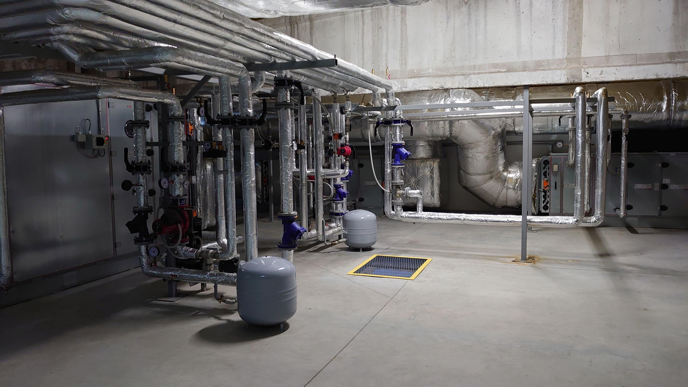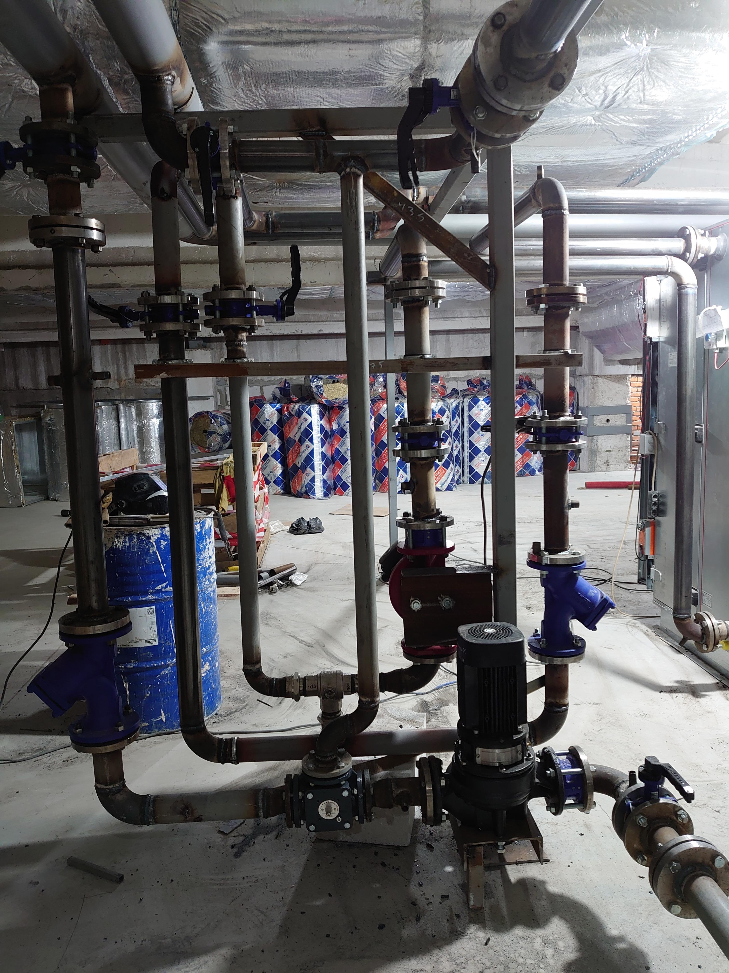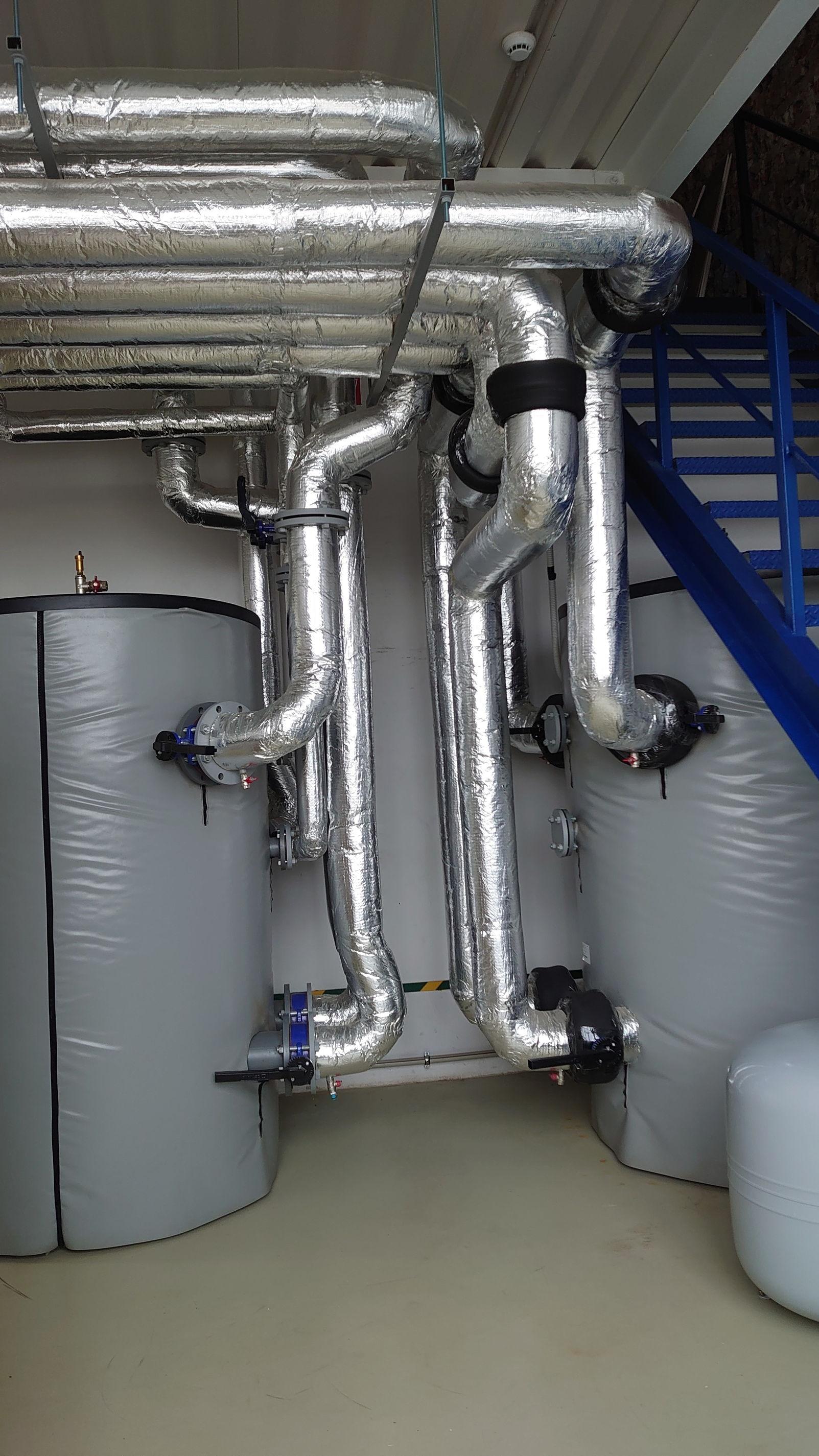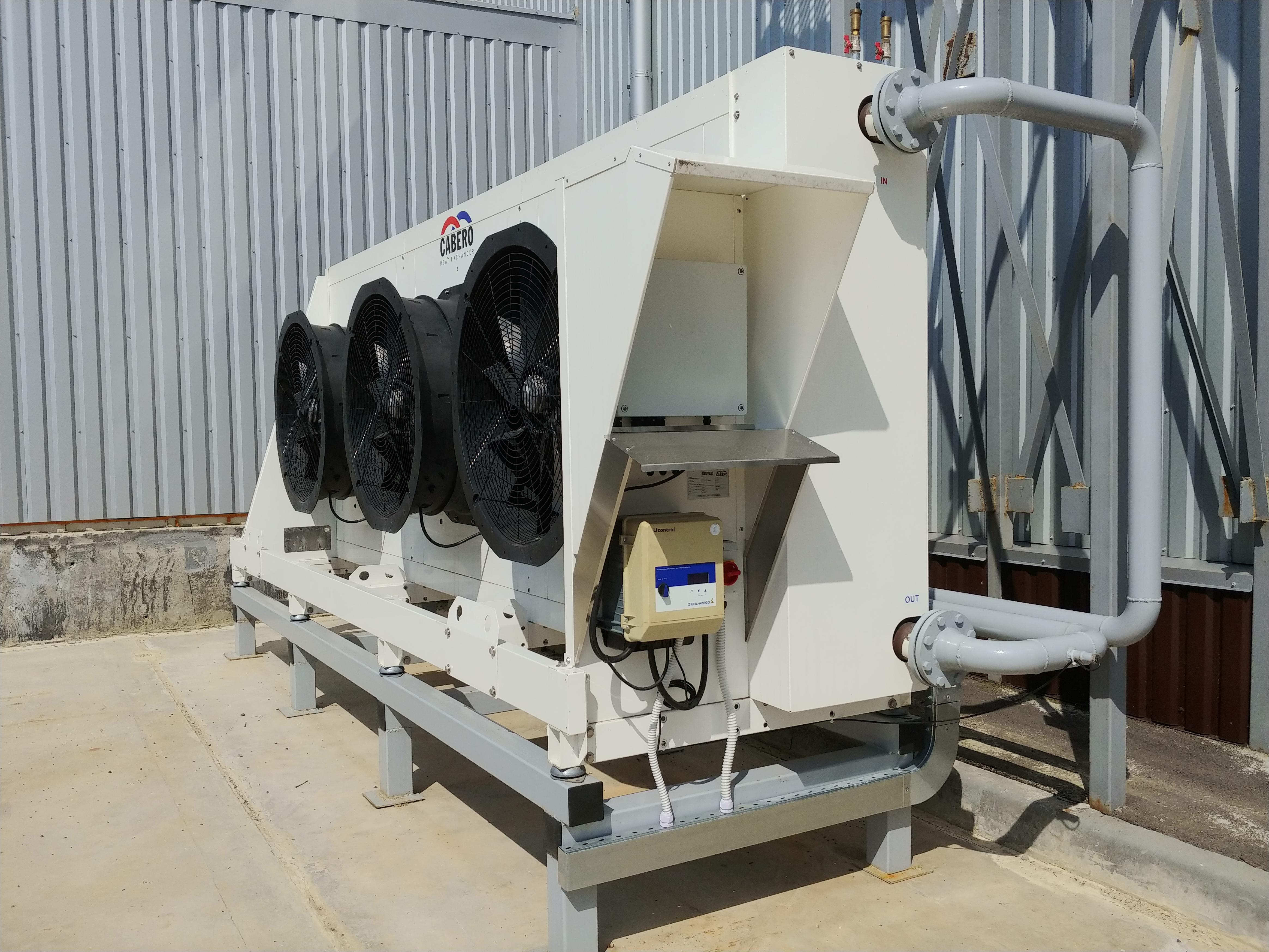 Тепловий насос енергоефективним способом вирішує відразу два завдання: по охолодженню і нагріванню технологічної води до потрібних температур, сумарно споживаючи 80 кВт