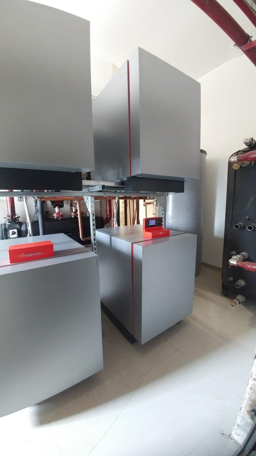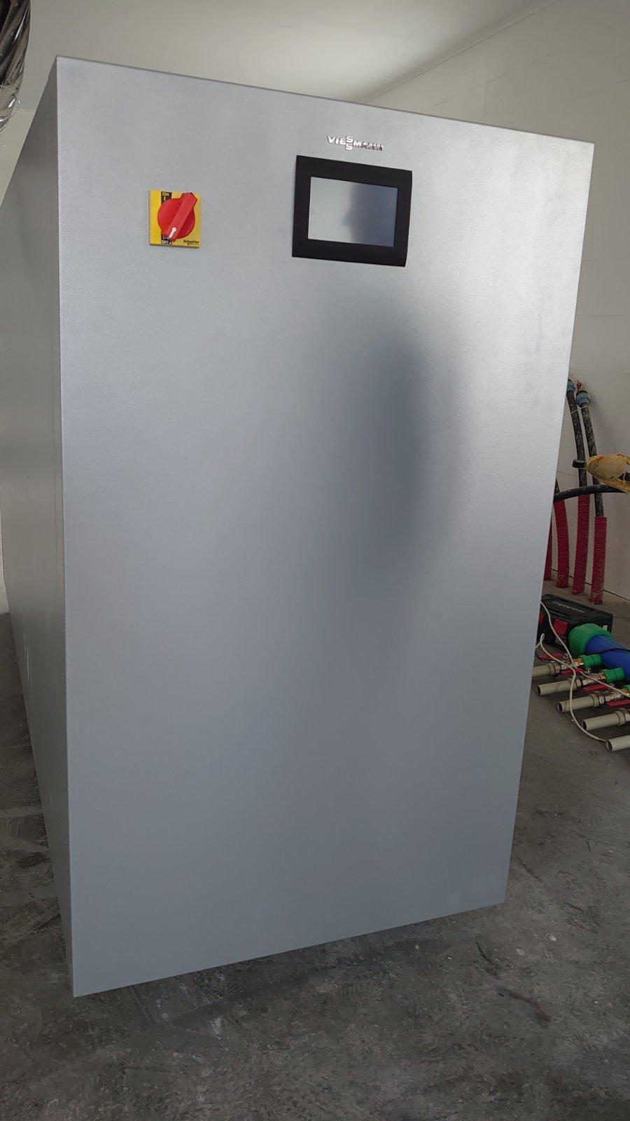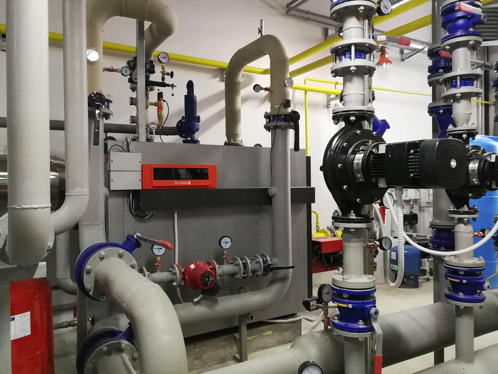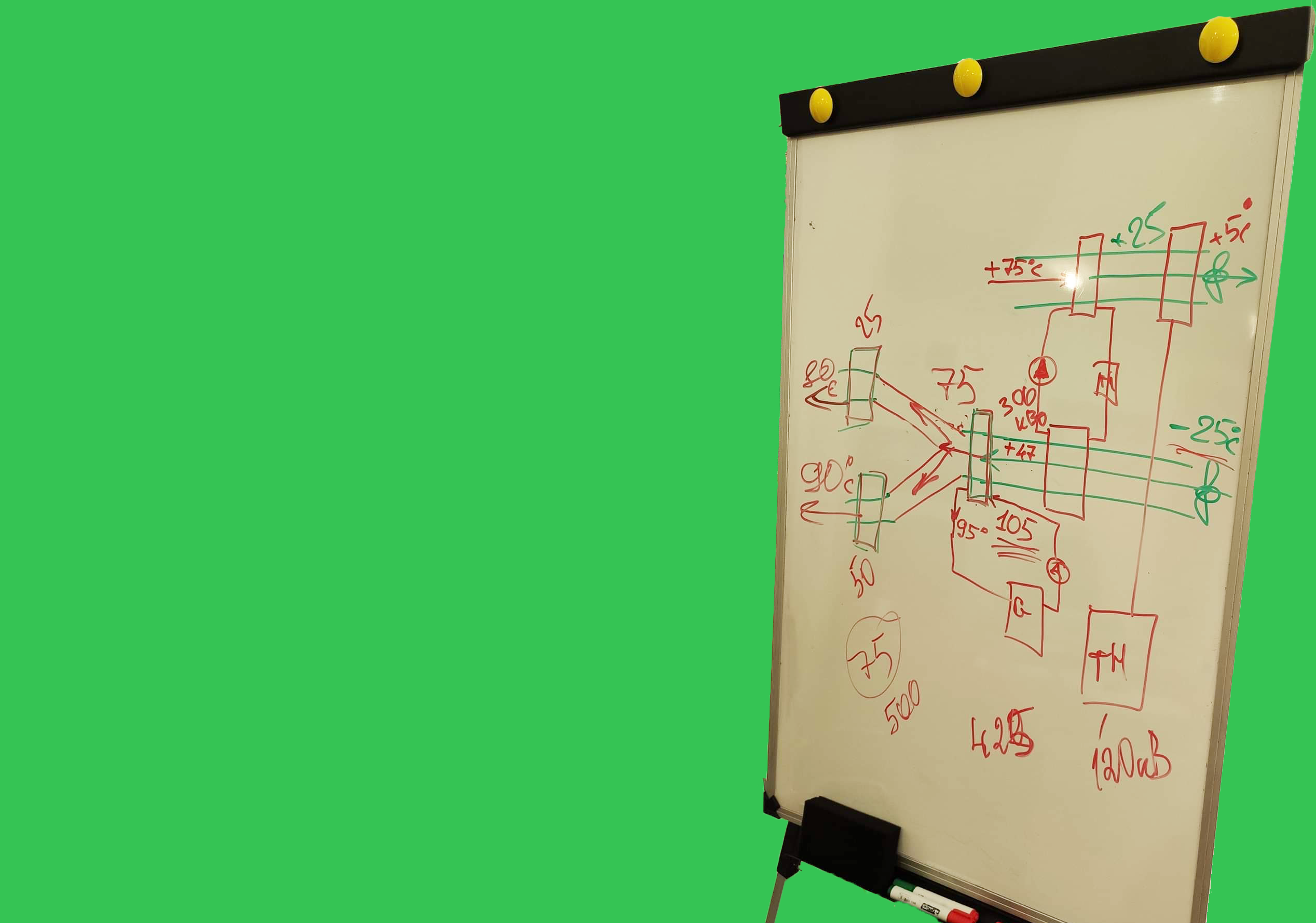 Тепловий насос енергоефективним способом вирішує відразу два завдання: по охолодженню і нагріванню технологічної води до потрібних температур, сумарно споживаючи 80 кВт